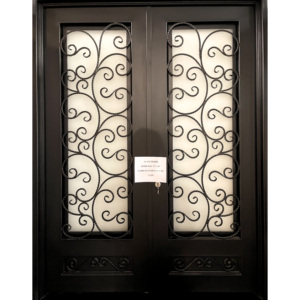 Wrought Iron Double Door – 72″ x 96″ – Full Light Scrollwork Frosted