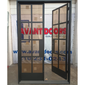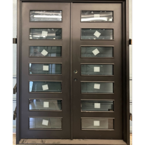 Wrought Iron Double Door – 72″ x 96″ – Modern with Divided Light Frosted