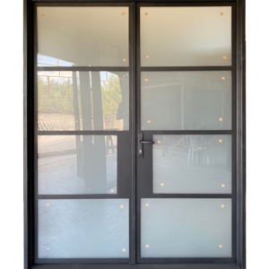 Wrought Iron Double Door – 72″ x 96″ – Modern Full Light Frosted